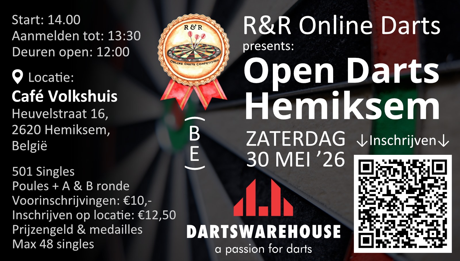 #RRDarts #OpenDartsHemiksem #DartsBelgië #CaféVolkshuis #RROnlineDarts #DartsToernooi #voordarters